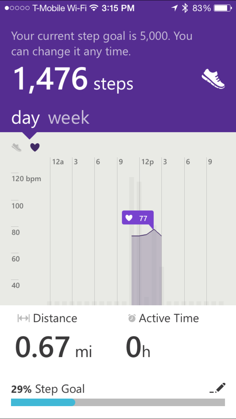 Compared to the small OLED of the Charge, the touchscreen of the Band offers much more usability. Both show the steps, calories burned, and alarms. The Charge also has the ability to show floors climbed with it’s built in altimeter. The Band does not have this feature, but I think the inclusion of a heart rate monitor helps give a better measure of effort anyways. For instance, if I’m using the Fitbit Charge to track a CrossFit workout, it may not seem like I’m taking a lot of steps, but you can rest assured that my heart will be beating out of my chest from the WOD (workout of the day). The Microsoft Band will be able to pick this measurement up now straight from the device. I would have had to wear an additional HRM and uploaded to RunKeeper or MyFitnessPal to get the same information into the FitBit data.