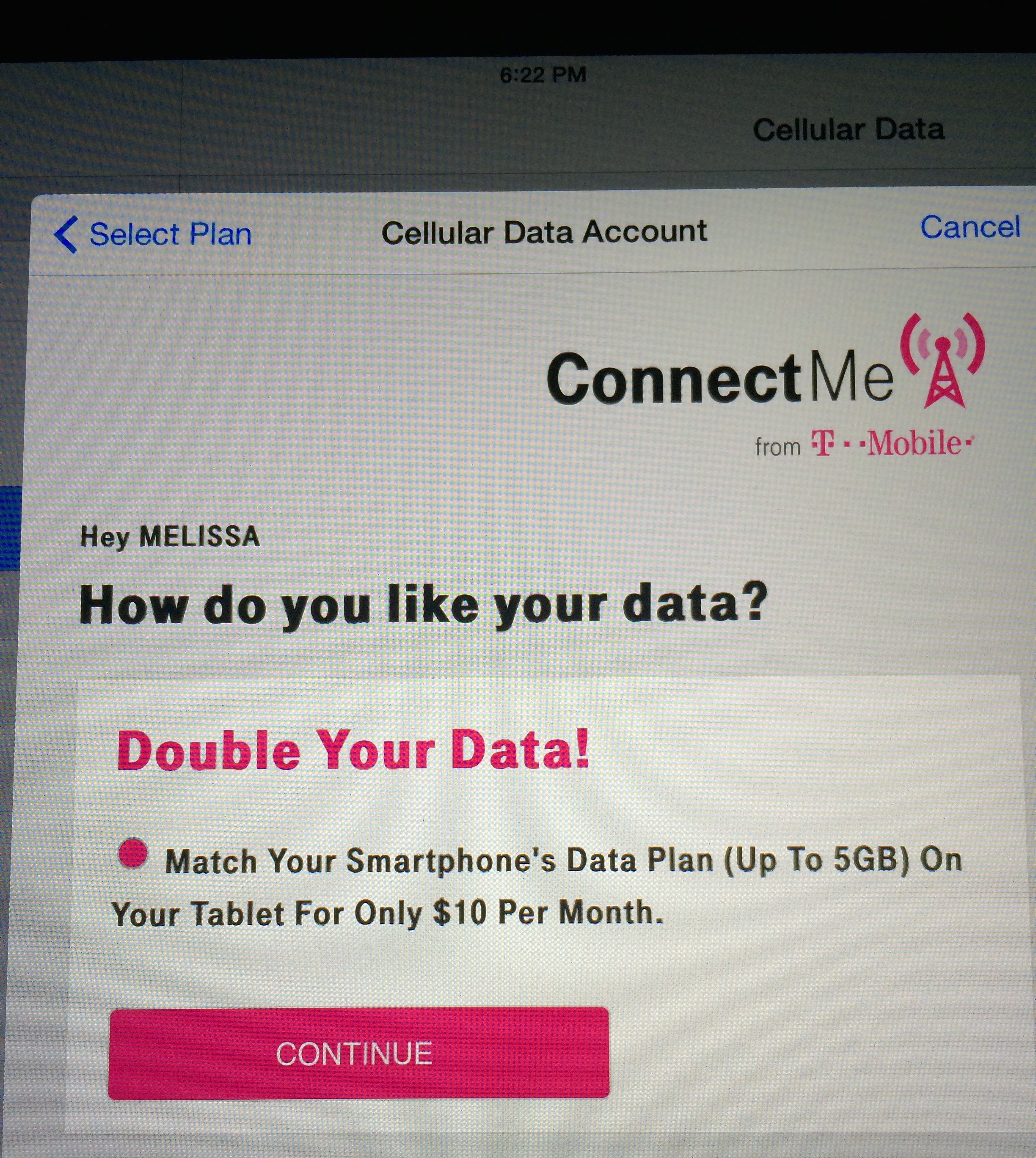 First, Verizon has chosen to completely abstain. Buy you iPad direct from Apple, and your Apple SIM registration choices are limited to AT&T, Sprint, and T-Mobile. Choose AT&T and the SIM becomes locked to the current edition of Ma Bell, requiring replacement should you want to later change up your 4G provider. Sprint and T-Mobile, with fewer subscribers and thus more motivation, are fully onboard with the reprogrammable Apple SIM. Yet, multiple attempts to register my iPad Air 2 on T-Mobile’s network… failed. A 25 minute call to T-Mobile support, followed by about 10 minutes of waiting, ultimately got it done – despite my doubts. Being first can often be inconvenient.