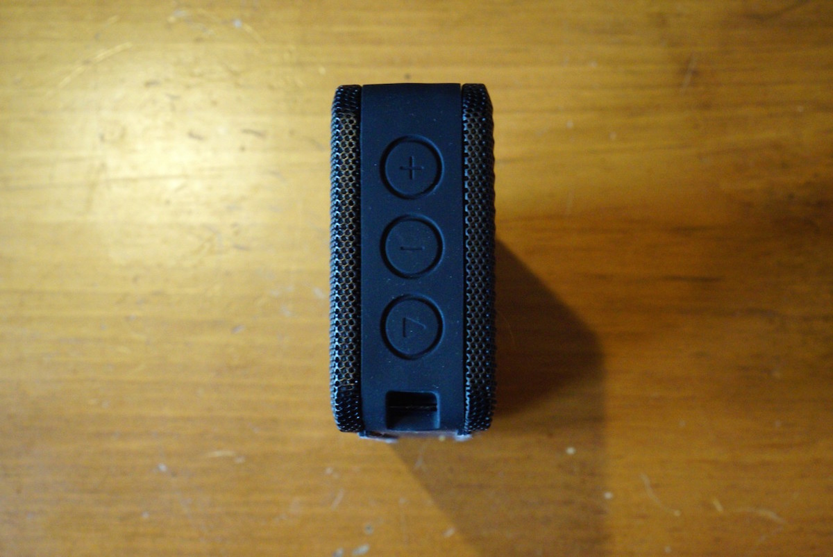 Compared to the sharp corners of the G-Boom or the circular shape of the EU Boom, the Soundfreaq Pocket Kick features a slab design with rounded off corners. The speaker grills are made of a steel featuring a nice pattern with the Soundfreaq logo in the middle. The outer edges of the of speaker feature a nice rubber material that makes the Pocket Kick easy to hold without slipping out of the hand. The rubber sides also allow the speaker to stay put on any surface while the music is jamming. Speaking of size, the Pocket Kick is the smallest of the three speakers we’ve had the chance to review. It’s roughly the size of an iPhone 5s from a surface area perspective, and about 3 times as deep.
