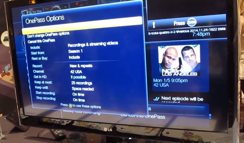 OnePass is expected to hit our units in February with with mobile app integration expected in March. And, while I’m sitting out CES on injured reserve, I take my TiVo blog responsibilities quite seriously and sent Liliputing Brad Linder on a mission to grab us the included visual evidence of TiVo’s Season Pass successor.