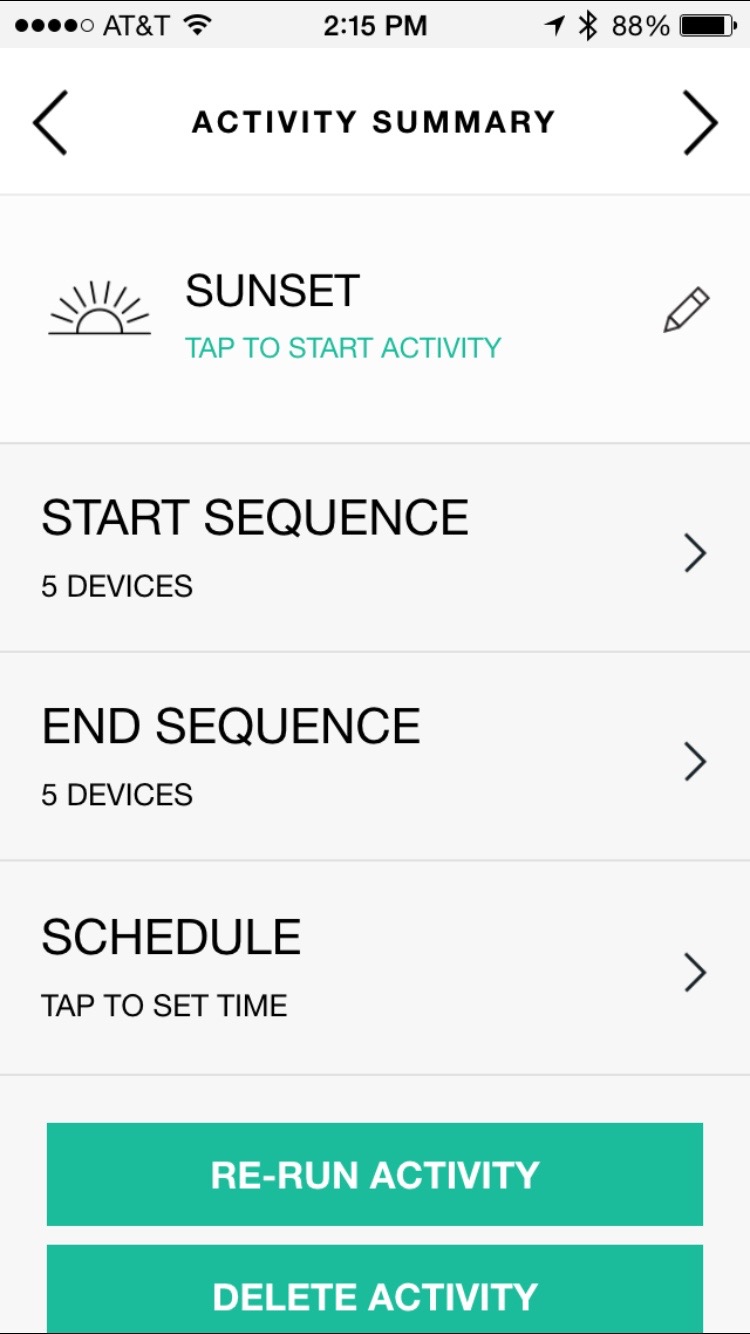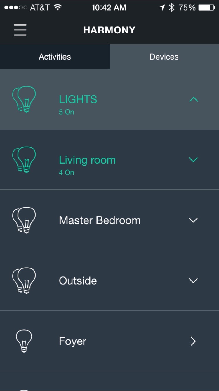 Outside of the Lutron and Hue lights, I use the Harmony to control my TV, AppleTV, TiVo, and Roku. With the added ability to control the lights, I love being able to setup new scenes that take advantage of that functionality. Instead of just “Watch TV”, I can now extend the use cases specifically for “Watch Movie” (one lamp at low level), “Just Relaxing” (all ceiling lights dimmed to 10%), etc.