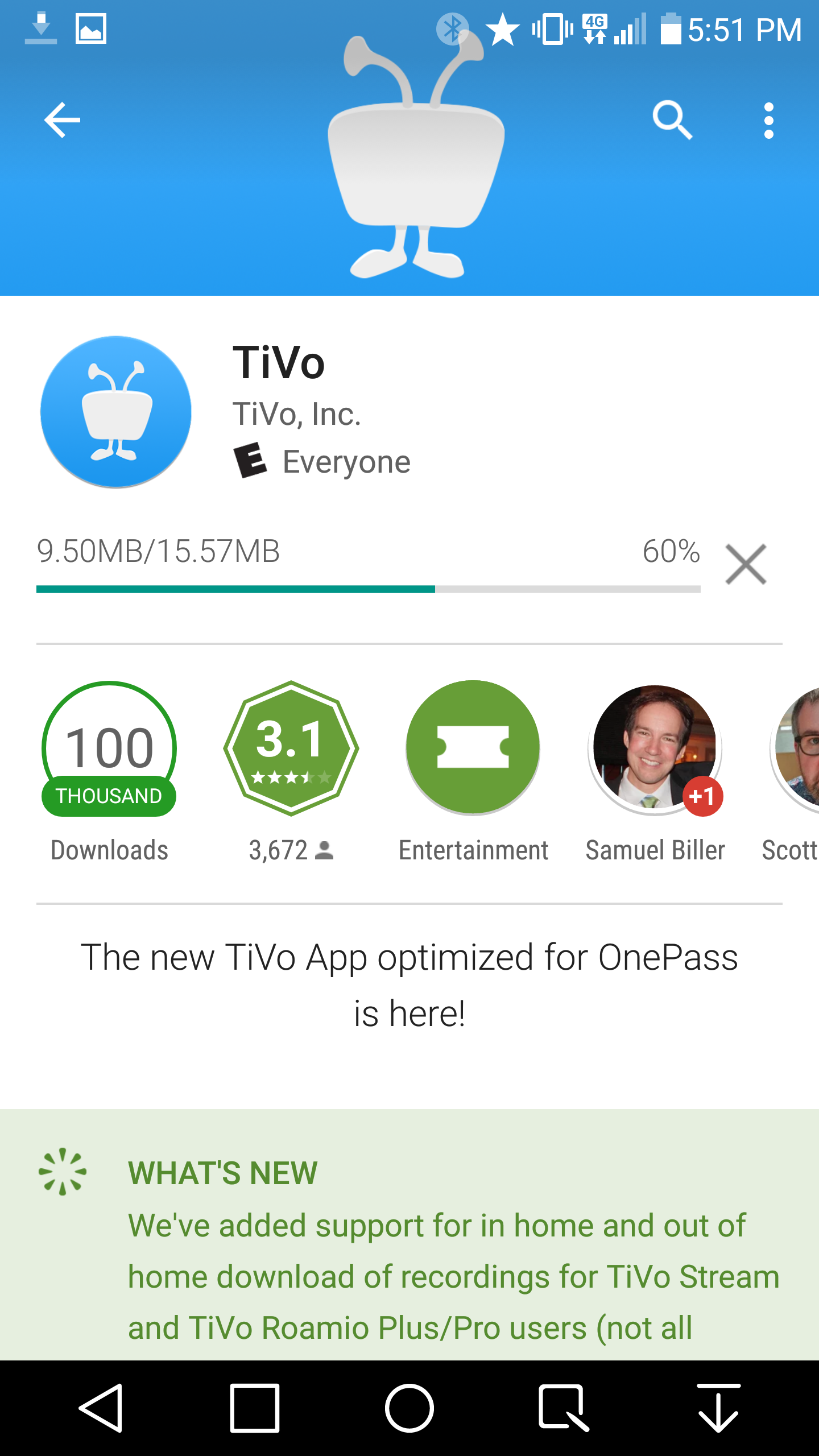 I see the new TiVo app finally works with my Galaxy Tab S 10.5 tablet. As well as downloads.