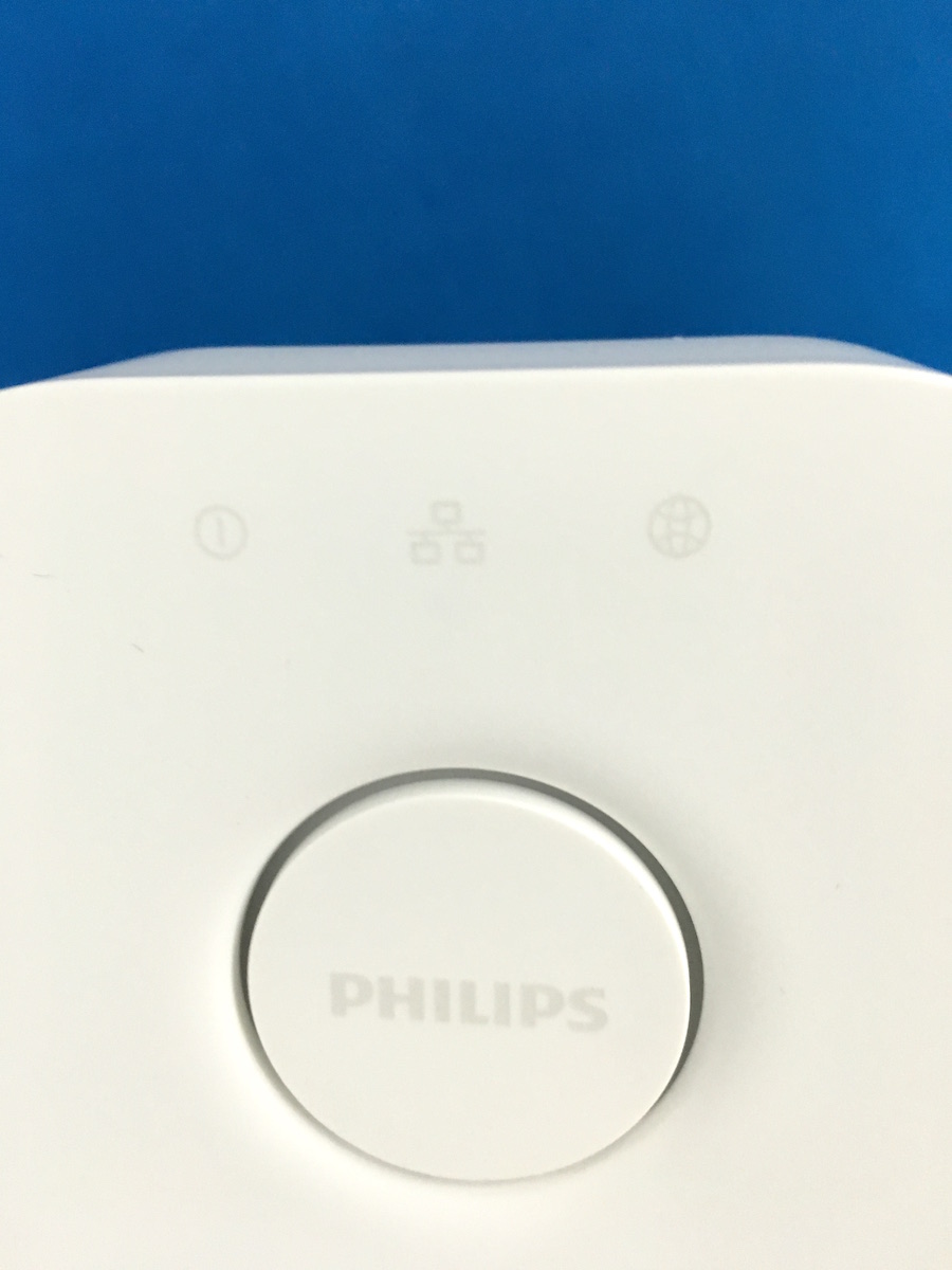 While Philips Hue HomeKit-compatible gear isn’t officially expected until October 6, the A19 Starter Kit has begun appearing at various retail locations. Indeed, I literally got my hands on the v2 hub bridge. It’s smaller and squarer than the existing model, with a nicer matte finish and generally more tasteful presentation… that is entirely irrelevant since you’ll be plugging it into your router somewhere out of sight. There are three indicators, plus a glowing ring that surrounds the much larger pairing button.