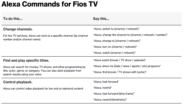 With Fios TV and Amazon Alexa, you can enjoy easy, hands-free voice control over your TV. You can tell Alexa what you want to watch, search for TV shows, movies, and actors from the guide and Video On Demand catalog. Use your voice to pause, play, fast-forward, or rewind.