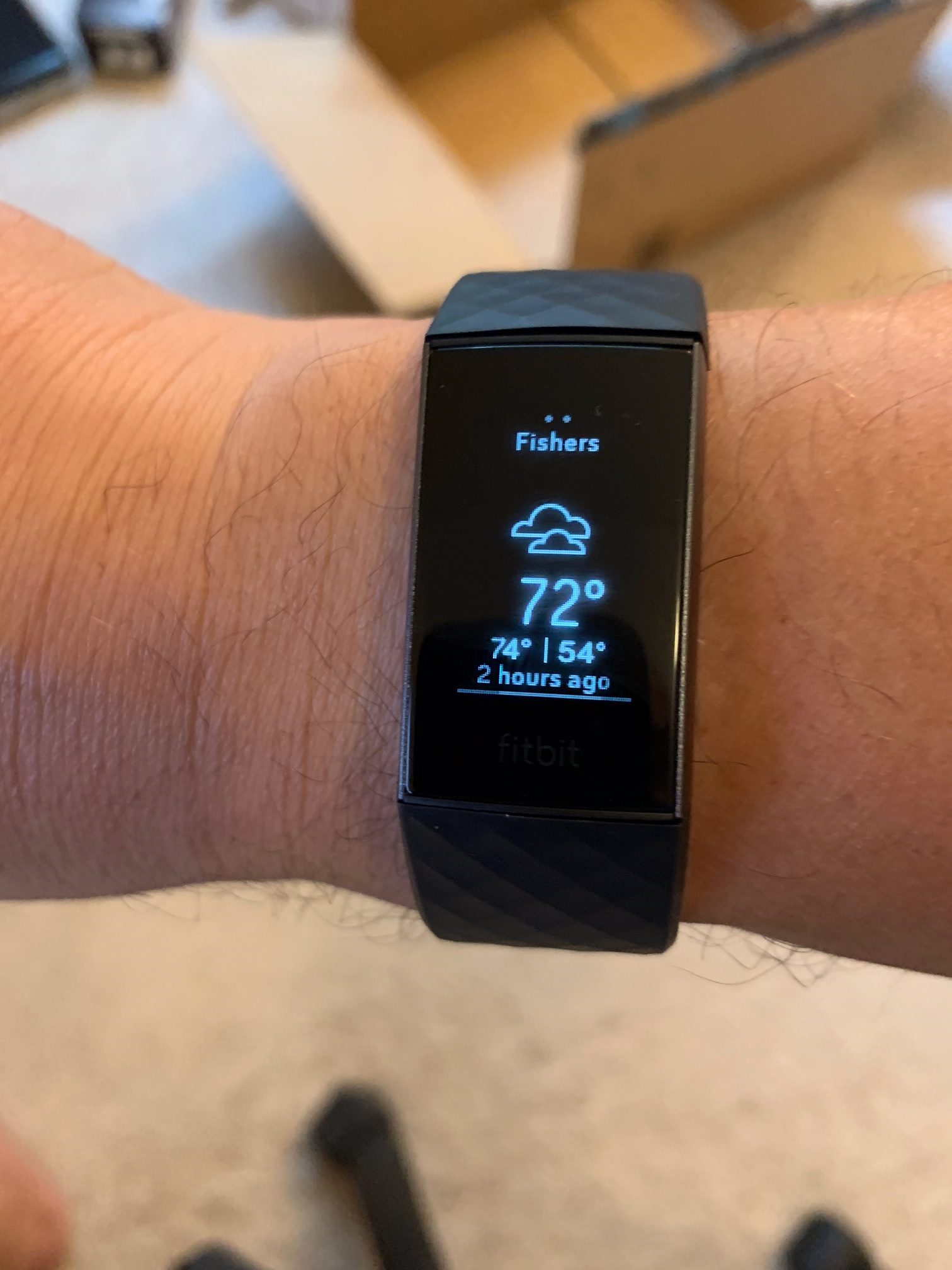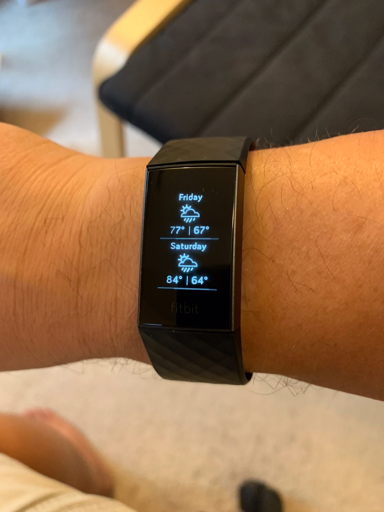 Looks like you can essentially hard code two favorite cities within the Fitbit app, in addition to monitoring your variable physical location. Current conditions are displayed, in addition to a two-day forecast, by swiping through the Charge 3’s new multi-touch Gorilla glass display.