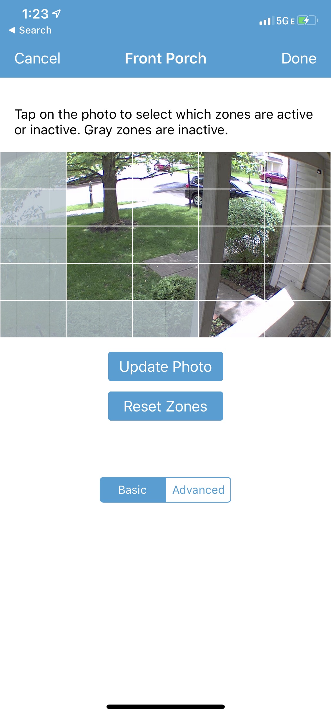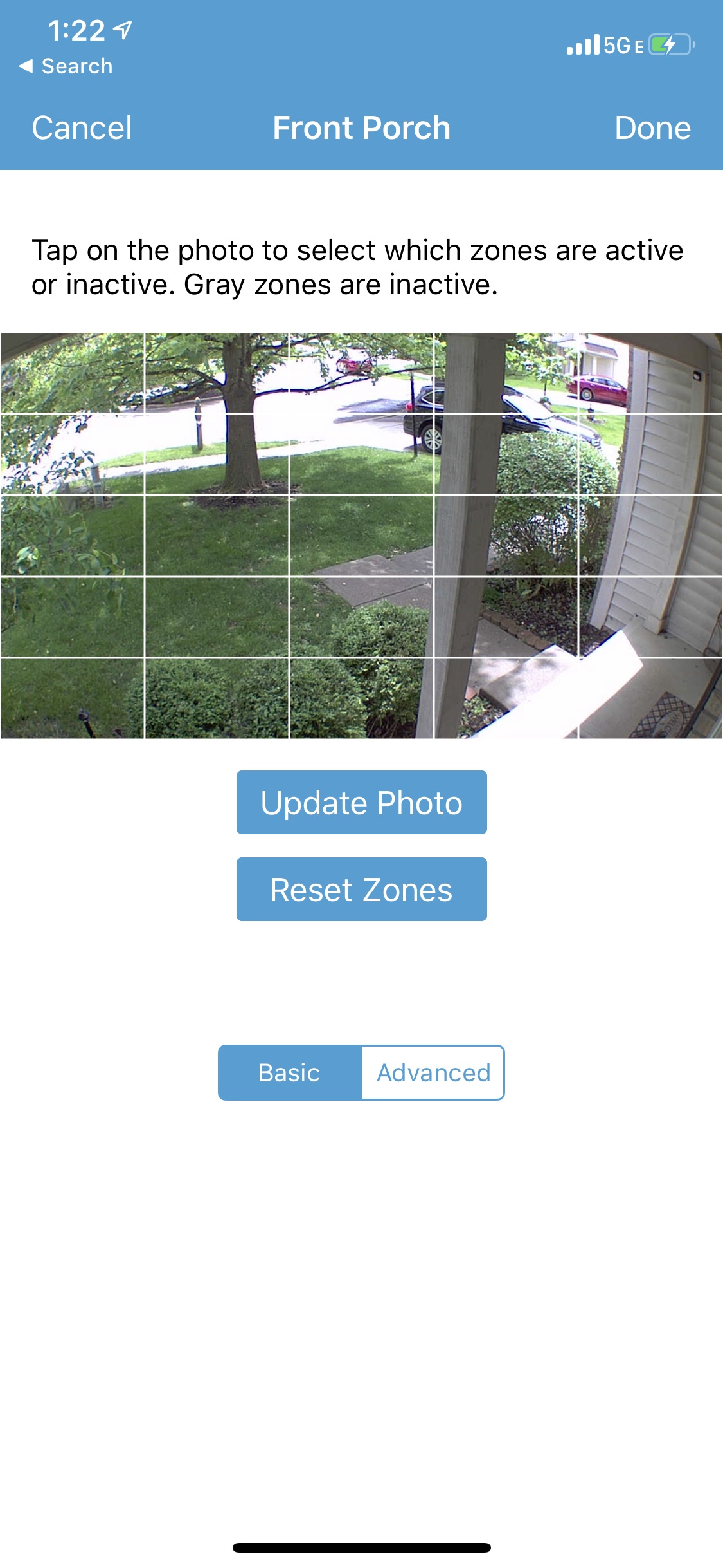 Next is the motion detection section. You are able to enable or disable from here. You can also specify activity zones which allows the XT2 to only record based upon the zones you select. The app also allows you to set a retrigger time, sensitivity, and clip length, and video quality. Adjusting any of these can affect the battery life of the camera itself and the app notifies you of this. Testing the motion, the camera was very responsive at the mid setting (5 of 10). Once the camera detects motion, a blue LED will light up indicating that it is recording.