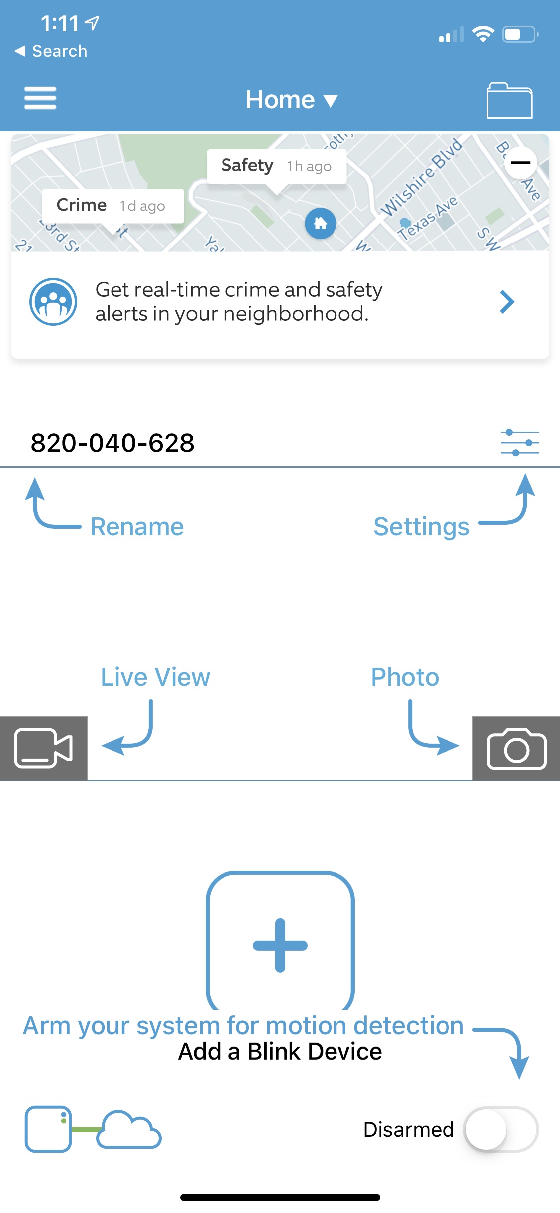 I did notice at the top of the main screen of the app a “crime alert” section. Clicking this actually opens up the Ring app (also owned by Amazon). I suspect that if I didn’t have the Ring app installed, and only the Neighbors app, it would have opened that instead. Tt’d be nice to be able to hide this section, but there’s no option. And it leaves me wondering if eventually the Blink system will just be rolled into Ring.