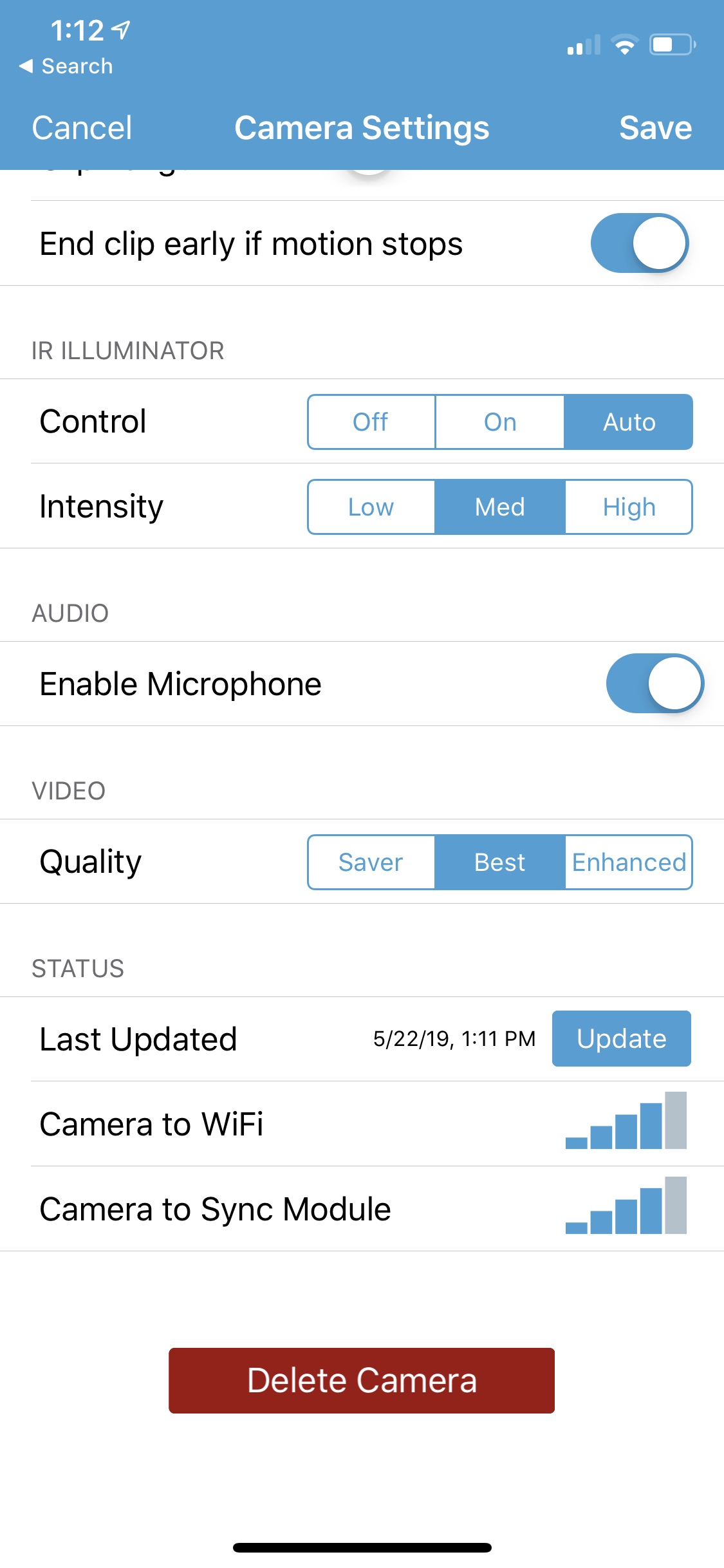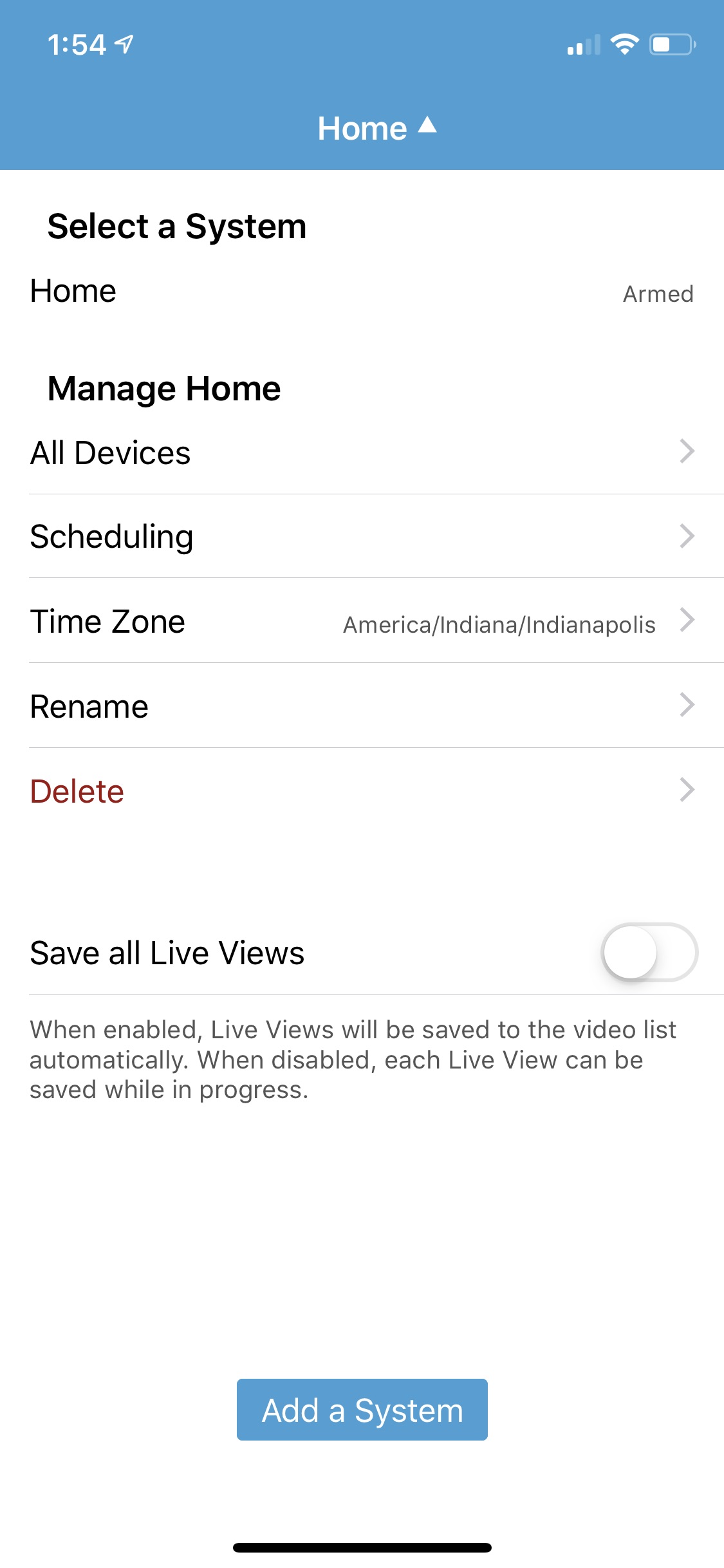 One other nice feature is scheduling. From the main page, you can select your residence and a drop down will appear to allow for scheduling arm and disarm periods. But I’d like to see Blink also add native arm/disarm via geolocation. This can be accomplished via IFTTT, but I’d rather have it directly from the app.