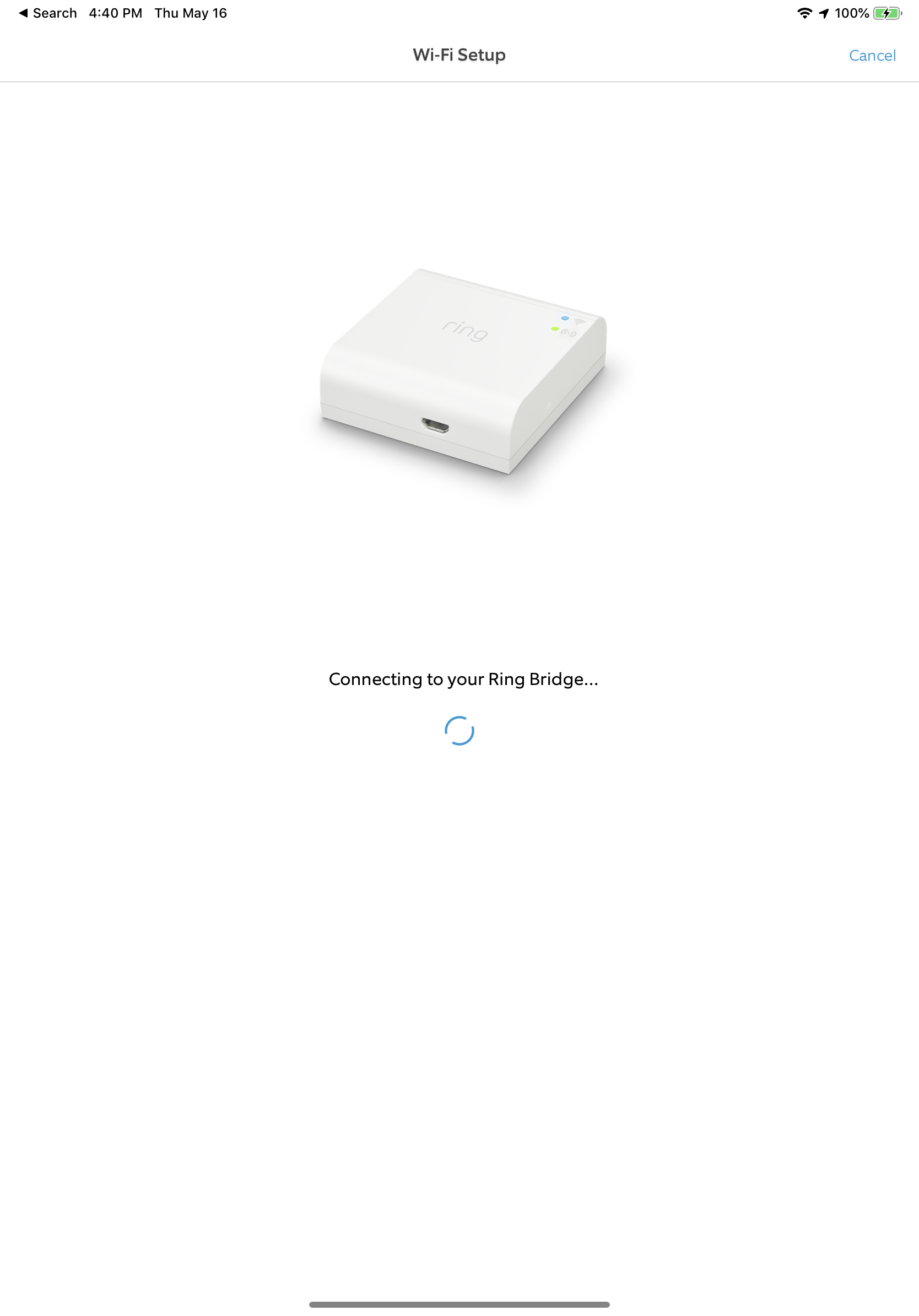 First step to integrate these products is to connect the bridge to your Ring account, allowing the proprietary lighting network to traverse your home LAN and Internet. The bridge itself is fairly small, but does require a USB cable and AC adapter for power. It would have been nice if the bridge had an integrated plug. That way wouldn’t have to have extra cables hanging around. Within the Ring app, you simply go to add a new product and the app walks you thru the instructions. Easy easy. The bridge connects via Wifi and does NOT have an Ethernet for a wired connection.