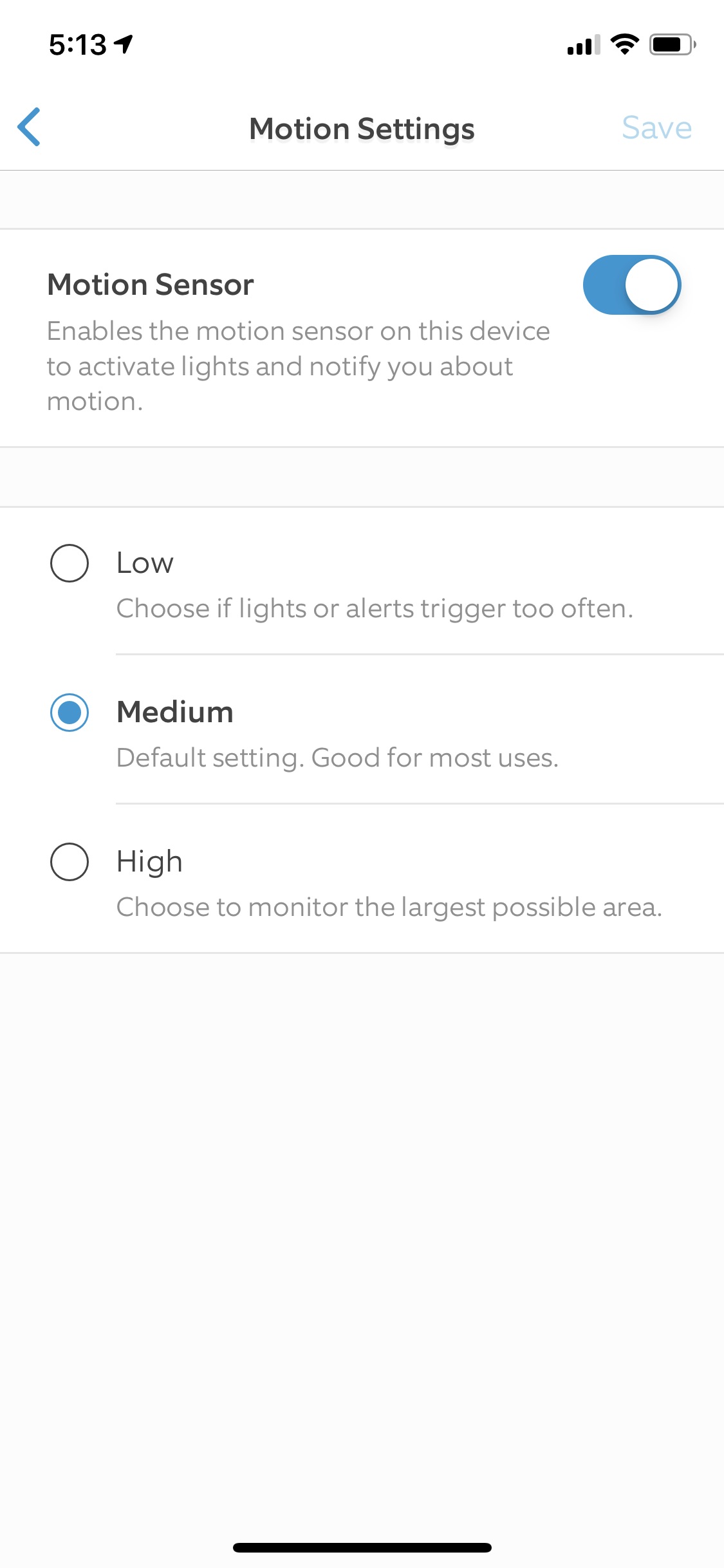 After getting the three path lights and two motion sensors paired to the bridge, I could finally start configuring them. The beauty of these lights/sensors is that they all have motion detection. Where previously my Ring doorbell would only be able to detect motion so far, the new sensors now allow me to extend that range detection and act upon it.
