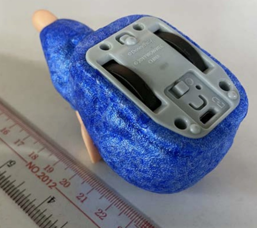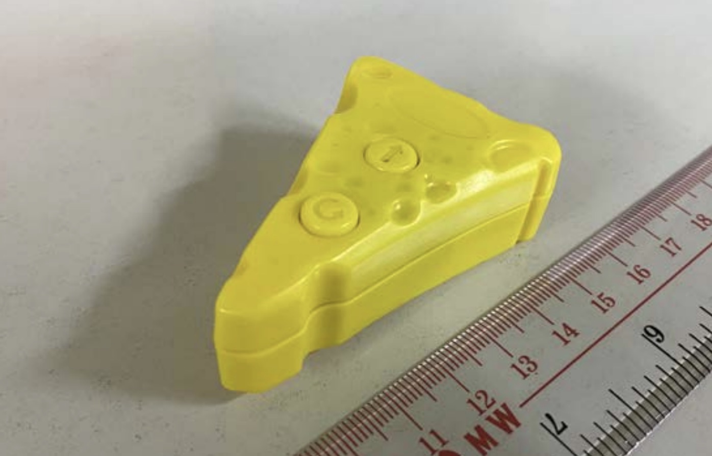 Coming in both Remy and Emile models, based on the Disney Pixar film, the shirt crawlers are bundled with a small cheese remote control. And, under one’s shirt, you place a simple plate, magnetic or otherwise, that backs the bottom of Remy (below, click to enlarge). I also imagine there will be character-specific fabric or plastic coverings over the mice, that wouldn’t necessarily make it into these regulatory filing photos. The remote is powered by three watch batteries, that will likely outlive the toy, while the mouse itself recharges via microUSB.
